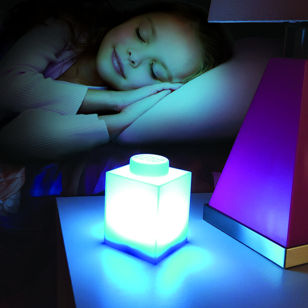 Kaunis LEGO-lamppu hauskassa värissä. Suloinen yölamppu on suunniteltu klassisen LEGO-palikan muotoiseksi ja se on valmistettu silikonista. Yölamppu voi loistaa 8 eri värissä ja voit vaihtaa väriä sytyttämällä lampun varovasti. Täydellinen yölamppu, joka antaa miellyttävän ja viihtyisän valon, kun on aika nukkua!