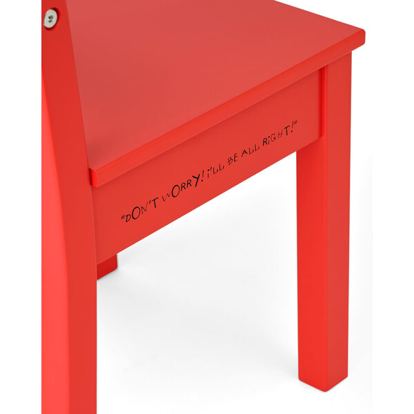 Tuoli on valmistettu FSC-sertifioidusta puusta ja sen istuimen toisella puolella on painettuna Pepin kannustavat sanat, kun taas toisella puolella on hänen tunnettu siluettinsa — kunnianosoitus hänen rohkealle ja itsenäiselle hengelleen. Selkänoja on koristeltu leikkisällä ruutukuviolla, joka on saanut inspiraationsa Pippin maailman kuvituksista.