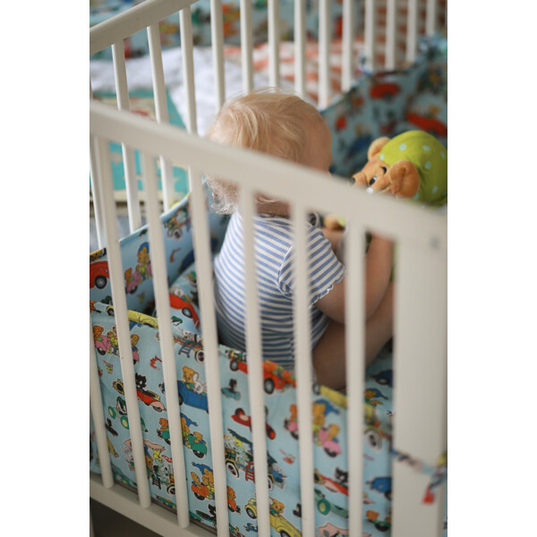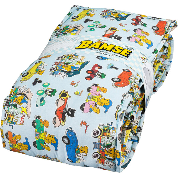 Tee lapsesi nukkumapaikasta turvallinen ja viihtyisä paikka Bamse-aiheisella pinnasängyn reunasuojalla. Suoja sidotaan helposti sängyn pinnojen ympärille.
