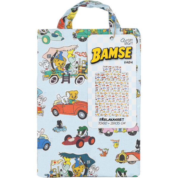 Pussilakana ja tyynyliina Bamse-kuviolla. Valmistettu puuvillasta.