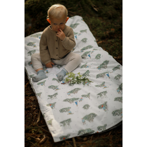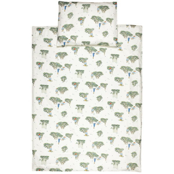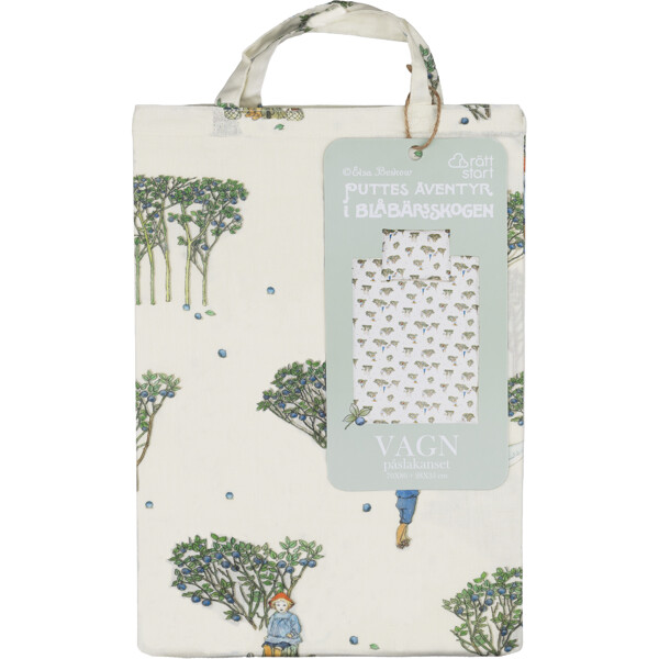 Pussilakana ja tyynyliina Rätt Startin Elsa Beskow Puttes seikkailut mustikkametsässä -kokoelmasta. Valmistettu puuvillasta.