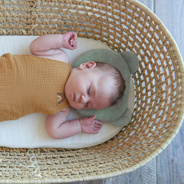 Candide Panda Vauvatyyny on pieni, joustava ja turvallinen vauvatyyny, jossa on ergonominen muoto. Tyyny on valmistettu memory foamista, joka lievittää painetta ja vähentää riskiä, että lapselle kehittyy kallon epäsymmetria tai litteä pää. Vauvatyyny on muotoiltu ainutlaatuisesta korkean tiheyden viskoelastisesta vaahtomuovista, joka muistaa vauvan pyöreän pään. Se on pieni eikä sisällä irrallisia osia, mikä vähentää tukehtumisriskiä ja uloshengitysilman sisäänhengityksen riskiä.Tyynyn keskellä oleva muoto ja 2-3 cm:n matalat reunat antavat lapselle mahdollisuuden liikuttaa päätään vapaasti ja säilyttää niskan suoran linjan. Lapsen pää ei kiinnity paikoilleen, joten niskalihakset voivat kehittyä lapsen kasvaessa.Panda-vauvatyyny on valmistettu puuvillaisesta froteekankaasta, ja sitä voidaan käyttää missä tahansa, missä lapsi makaa selällään. Tyynyn materiaalin ansiosta se pysyy vakaasti paikoillaan myös vauvansängyssä tai auton istuimessa, jossa on pieni kallistus.Vauvojen suositellaan makaavan selällään, jotta äkillisen lapsikuoleman riski pienenee. Samalla vauvat syntyvät pehmeillä kalloilla ja avoimilla aukileilla. Tämän seurauksena monille lapsille kehittyy kallon asentoepäsymmetria litteän takaraivon tai vinon kallon muodossa selinmakuuasennon aiheuttaman paineen vuoksi. Memory-vaahtomuovilla on tunnustetusti painetta lievittäviä ominaisuuksia, ja sitä käytetään laajalti terveydenhuollossa.Tärkeää!Huomioi muut kallon epämuodostumia ehkäisevät toimenpiteet, kuten pään pitäminen vapaana. Esimerkiksi vatsalihasharjoittelulla hereillä ollessa on useita etuja. Lapsi harjoittelee niskaa ja koko selän aluetta ja stimuloi ryömimisrefleksiä.Panda-tyynyä ei pidä käyttää, jos kallon epäsymmetria on jo kehittynyt, kallo on litteä tai vino tai torticollis. Sen sijaan suosittelemme Doomoo Basics sivutyynyä babysleep, joka tarjoaa 100 % helpotusta. Tuptetietoa Candide Panda Vauvatyynystä- Ehkäisee kallon epäsymmetriaa- Ei kiinnitä päätä- Minimoi tukehtumisriskin- Säilyttää niskan suoran linjanMitat: 19 x 21 x 3 cmIkä: 0-6 kkMateriaali: Ulkokangas: 100 % puuvillaaSisävuori: 100 % polyesteriTäyte: 100 % polyuretaani (memory foam)Pesu: 30 astetta koneessa