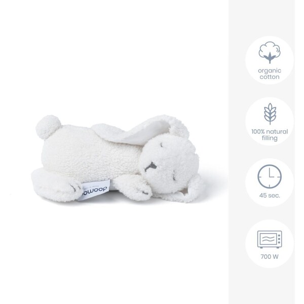 Doomoo Lämpötyyny Pehmolelu Kani auttaa lasta rauhoittumaan. Se lievittää vatsakramppeja, koliikkia ja muita vatsaan liittyviä ongelmia – samalla kun se on pehmolelu. Lämpötyynyssä on pieni sisätyyny, joka on täytetty rauhoittavalla laventelilla ja rapsilla, ja se lämmitetään helposti mikrossa.Lämpötyyny Pehmolelu Kani sisältää pehmeän sisätyynyn, joka on täytetty ekologisella rapsilla ja laventelilla. Sisätyyny lämmitetään mikroaaltouunissa, asetetaan pehmolelun päällyksen sisään ja laitetaan sitten vauvan vatsalle. Lämpötyyny auttaa vatsaa rentoutumaan niin, että kramppeja aiheuttavat ilmataskut vähenevät luonnollisesti. Samalla se levittää miellyttävää tuoksua, joka rauhoittaa levottomimmankin pienen vauvan. Lämpötyyny Pehmolelu Kani voidaan myös käyttää lämmittämään kylmää sänkyä, lastenvaunuja tai turvaistuinta.Lämpö, tuoksu, turvallisuus ja suloinen muotoilu tekevät Lämpötyyny Pehmolelu Kanista nopeasti suosikkipehmolelun, josta lapset eivät voi olla erossa.Tärkeää!– Lämmitä mikroaaltouunissa. Lämmitä sisätyyny 700W. Tarkista lämpötila 45 sekunnin jälkeen ja lämmitä vielä 15 sekuntia, kunnes tyyny on sopivan lämmin. Varmista huolellisesti, ettei se ole liian kuuma!– Lue tuotteen mukana tulevat ohjeet ja varoitusteksti ennen käyttöä.Tiedot Doomoo Lämpötyyny Pehmolelu Kani – Lämpötyyny ja pehmolelu– Lievittää vatsakramppeja, koliikkia ja kaasuja– Laventelin tuoksu rauhoittaa lasta– Voidaan käyttää lämmittämään sänkyä, turvaistuinta ja lastenvaunujaMateriaali: Päällinen 92% puuvillaa, 8% polyesteriä.Täyte: Rapsi ja laventeli.Pesu: Päällinen voidaan pestä koneessa 30 asteessa
