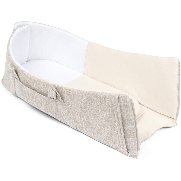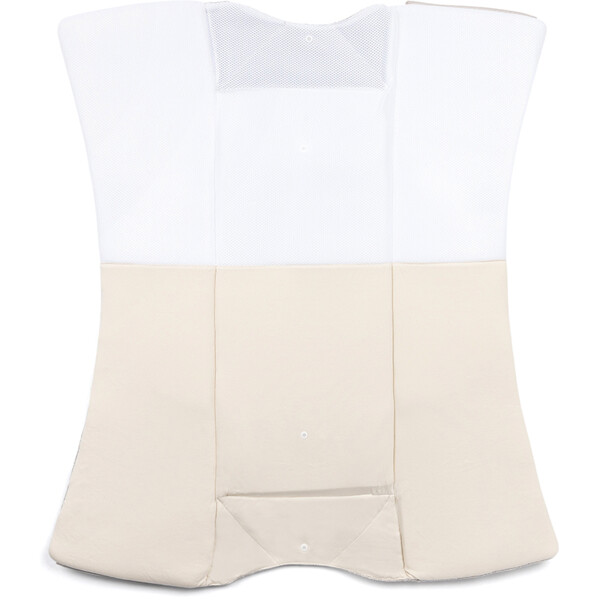 Irrotettava patja on valmistettu hengittävästä 3D-kankaasta maksimaalisen mukavuuden takaamiseksi ja sitä ympäröi pehmeä, ekologinen puuvilla, joka on OEKO-TEX®-sertifioitu, täydellinen herkälle vauvan iholle. Helpon käsittelyn takaamiseksi vaipanvaihdon aikana sivu avautuu helposti, ja kun vauvanpesää ei käytetä, se taittuu kätevästi kokoon ja säilytetään mukana tulevassa laukussa.