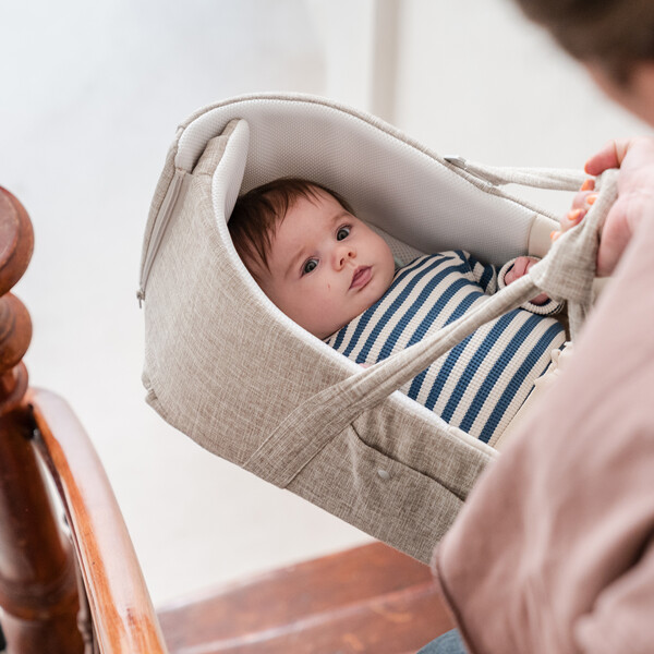 Ergonomisen muotoilunsa, kantokahvojensa ja vettähylkivän ulkokankaansa ansiosta pehmeä kantokassi on sekä helppo ottaa mukaan että yksinkertainen käyttää useimmissa vaunukopissa tai tasaisilla istuinosilla mukana tulevien turvavöiden avulla. Vauvasi voi levätä turvallisesti ilman, että häntä tarvitsee herättää siirron aikana.