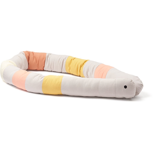 Pehmeä pitkä tyyny, joka on monikäyttöinen Meta-kastemadon muotoinen. Voidaan käyttää sekä pehmoleluna että vauvan pesänä. Käytä sitä pienemmille lapsille pehmeänä ja kotoisana pehmusteena pinnasängyn laidoilla tekemään sängystä pehmeämmän ja viihtyisämmän. Tai käytä sitä tukena imetyksen tai pulloruokinnan aikana tai helpottavana raskaustyynynä sängyssä. Pitkän tyynyn voi järjestää ympyräksi tai mitä tahansa, mikä sopii tilaisuuteen.