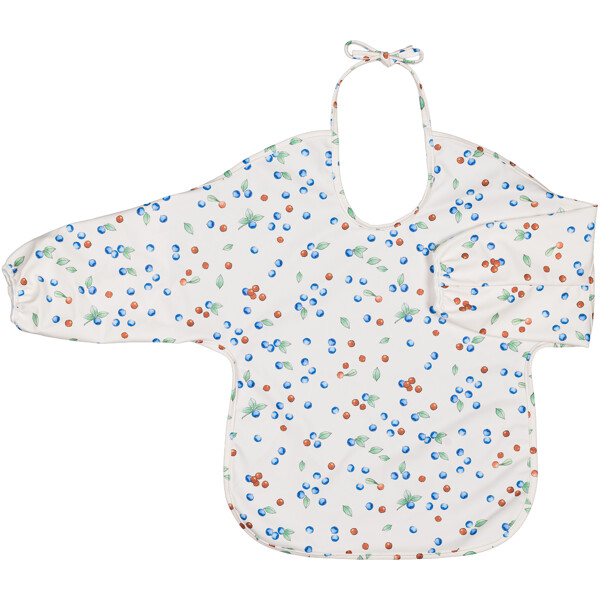 Käytännöllinen hihallinen ruokalappu, jota voi käyttää sekä ruokailussa että leikeissä, Elsa Beskowin kirjan "Puttes äventyr i Blåbärsskogen" kuvituksilla. Solmitaan helposti nauhoilla niskan taakse.
