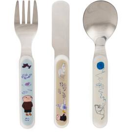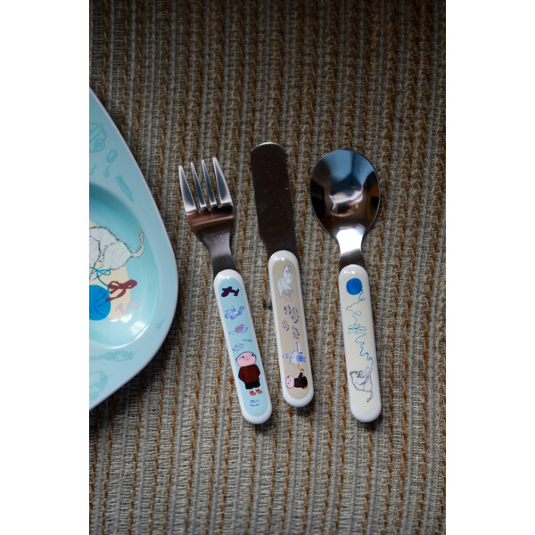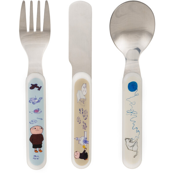 Kestävä lasten aterinsetti ABS-muovista ja ruostumattomasta teräksestä. Veitsi, haarukka ja lusikka, jotka sopivat pieniin käsiin ja suihin. Toimitetaan kauniissa ja käytännöllisessä lahjapakkauksessa.