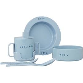 Design Letters Mini Favourite Aloitussetti on hieno aloitussetti, sisältäen kaiken mitä lapsi tarvitsee vauvasta kouluikään. Kuppia voi ensin käyttää kannen ja kahvan kanssa ja lapsen kasvaessa ne poistetaan.Lusikat ovat kahden kokoisia: baby och junior. Syvä lautanen jakulho soveltuvat täydellisesti lasten kaikkiin ateriointeihin ja niitä voi myöhemmin käyttää aamiais- ja välipalakulhoina lapsen kasvaessa.
