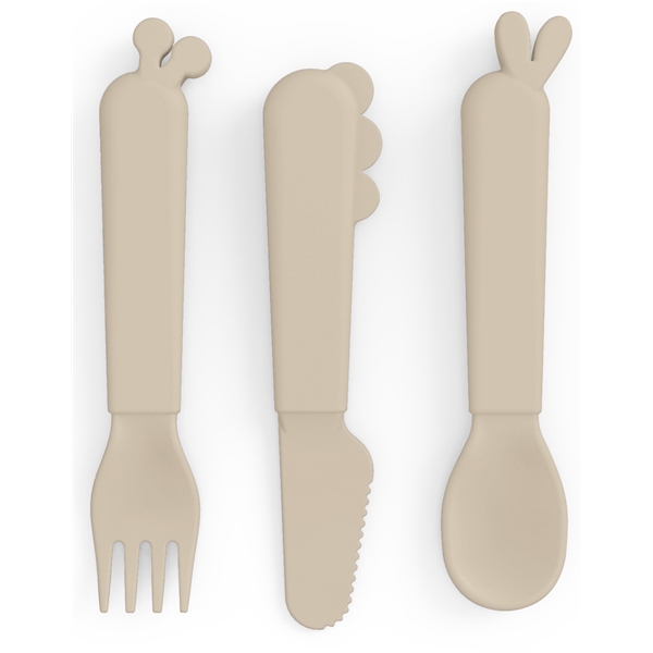 Done by Deer Kiddish Cutlery Setissä on pyöristetyt muodot, mikä tekee niistä turvalliset pienen lapsen harjoitellessa ruokailua omin päin. Aterimet on mitoitettu hyvin sopiviksi pieniin käsiin ja ne on huolella testautettu lapsilla.