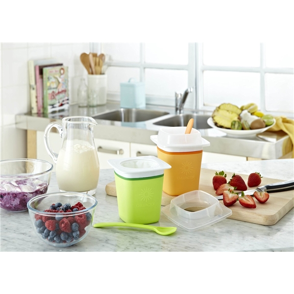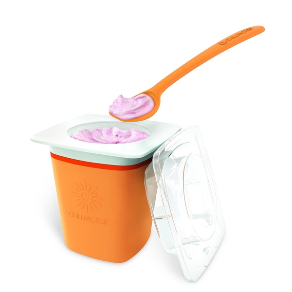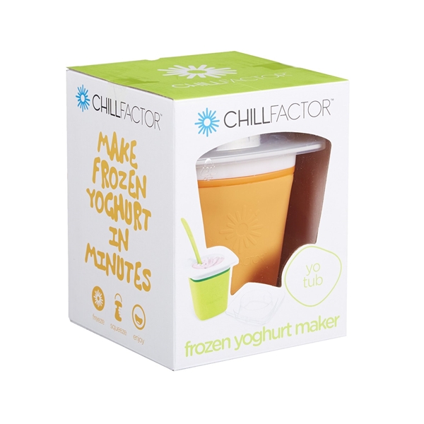 Yksinkertainen ja nopea tapa valmistaa omaa Frozen Yoghurt tämän Chill Factor Frozen Yoghurt-makerin avulla! Jäädytä Yoghurt maker, ota se ulos pakastimesta ja lisää suosikkijogurttiasi ja lisukkeita. Puristele ja nauti!