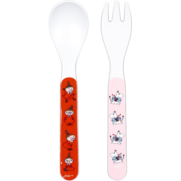 Lusikka ja haarukka Pikku Myy -kuviolla, sopii syöttämiseen tai lapselle itse syötäväksi.