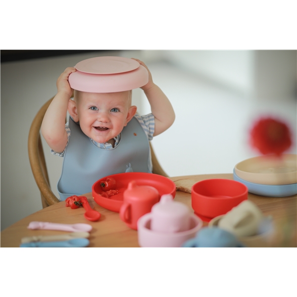 Silikoni on elintarvikekelpoinen ja kestävä materiaali, joka ei sisällä BPA:ta, PVC:tä, ftalaatteja eikä lyijyä.