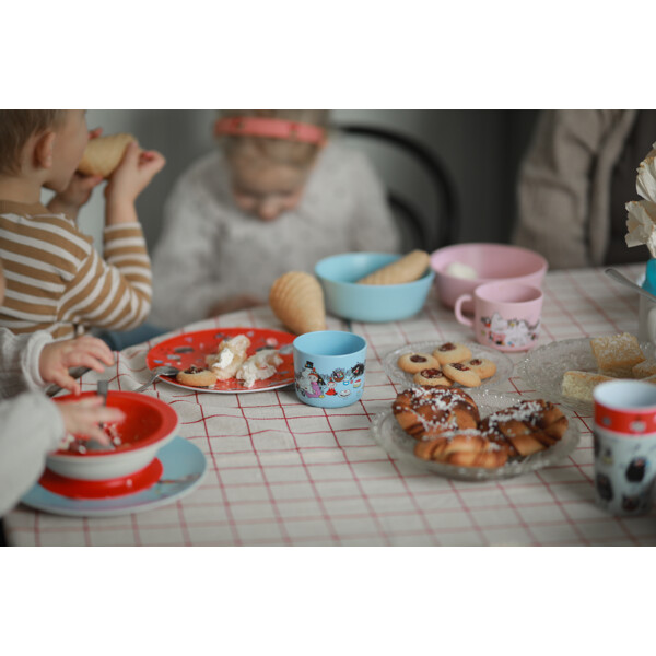 Muki, jossa on kahva, Moomin Picknick -kokoelmasta. Valmistettu RPET:stä, joka on ympäristöystävällinen ja kestävä materiaali.