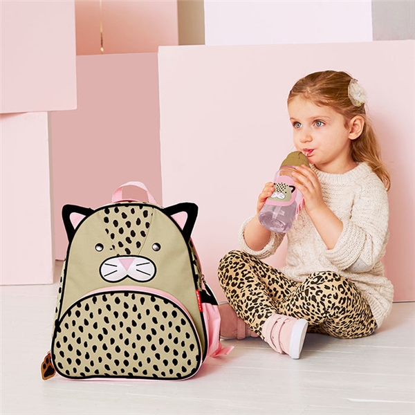 Skip Hop Zoo Pullo Leopardi - Yksi elämän isoista askelista on, kun saa alkaa juomaan oikeasta pullosta. Zoo Pullossa on pilli, joka auttaa opettelussa. Pilli taittuu, kun kansi suljetaan ja siten pullosta ei läiky mitään.-Lisäpilli mukana.-Kestää konepesun.-Ei sisällä BPAta, PVCtä saati ftalaatteja.-Koko: 7×17,5 cm.-Tilavuus noin 3,5 dl.