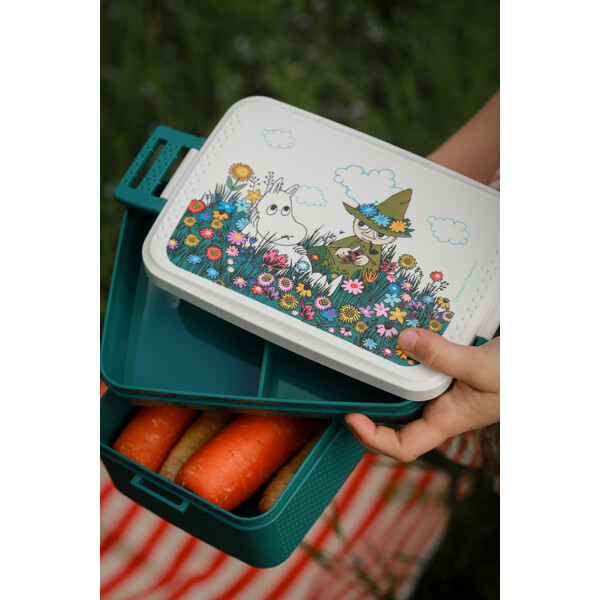 Kirjailija ja taiteilija Tove Jansson rakasti merta ja luontoa. Lähes kaikki hänen kertomuksensa ja kuvituksensa sijoittuvat luontoon. Lounaslaatikoiden kuvitukset kuvaavat Muumiperheen seikkailuja. Tuote on valmistettu erittäin hienossa tehtaassa, joka on BSCI-sertifioitu hyvien ja turvallisten työolosuhteiden takaamiseksi. Tehdas on sertifioitu ISO 9001 -laatujärjestelmän mukaisesti varmistaakseen hyvän käsittelyn elintarvikekäyttöön tarkoitetuille tuotteille.