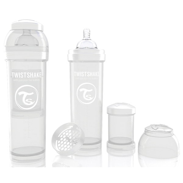 Kätevä tuttipullo ihanissa väreissä. Sen ainutlaatuinen TwistFlow-systeemi ehkäisee koliikkia ja anta tasaisen virran. Twistshake Tuttipullossa on leveä suuosa, joten se on helppo puhdistaa. Siitä saa hyvän otteen ja paksu muovi säilyttää lämmön. Jokaisen Twistshaken mukana tulee kätevä jauheastia, joka helpottaa ruokien valmistamista. Voidaan erinomaisesti yhdistää imetykseen.Paketti sisältää tuttipullon, tutin, sekoitusverkon, suojakannen ja jauheastian, johon mahtuu 100 ml.