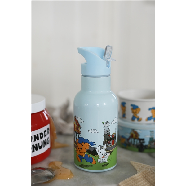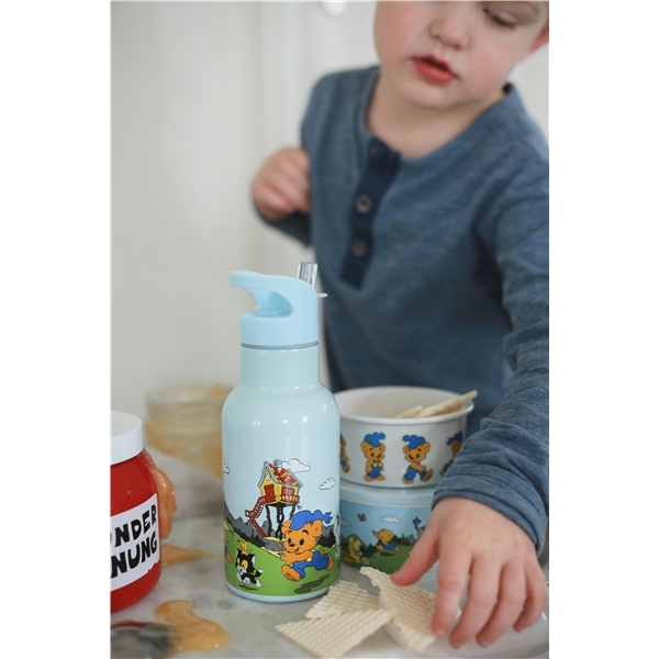 Bamse Vesilullo on superhieno vesipullo korkealaatuisesta teräksestä Bamse-teemalla! Pullossa on termotoiminto, jonka ansiosta nesteet pysyvät sekä kuumana että kylmänä. Sisällä on irrotettava muovinen pilli, joka annostelee sopivan määrän juotaessa.