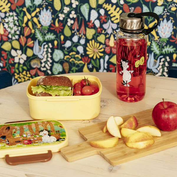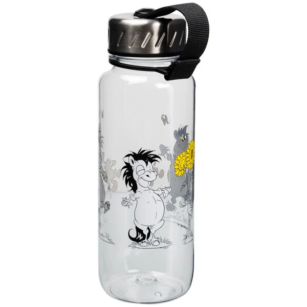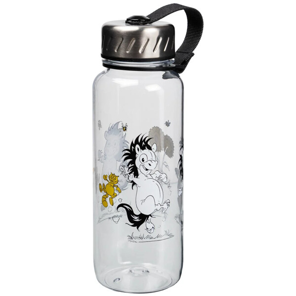 Vesipullo BPA-vapaata, kestävää tritan-muovia. Pullo on läpinäkyvä ja koristeltu iloisilla Hästen Mulle -kuvituksilla, jotka on tehnyt Lena Furberg. Kuvitukset ovat mustavalkoisia, ja joissakin yksityiskohdissa on kontrastivärinä auringonkeltainen. Tyylikäs korkki on valmistettu ruostumattomasta teräksestä. Tilavuus 650 ml. Pese käsin.