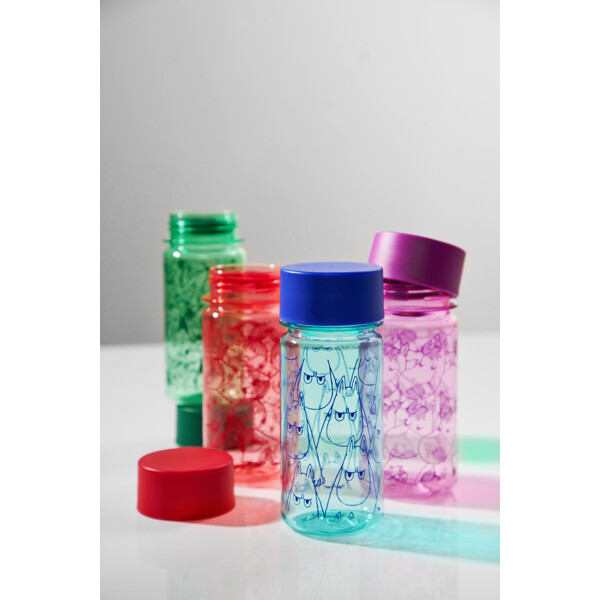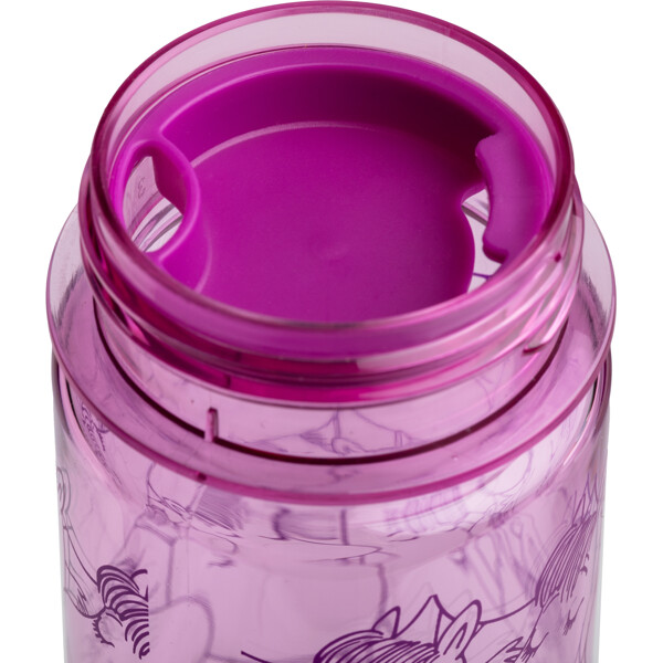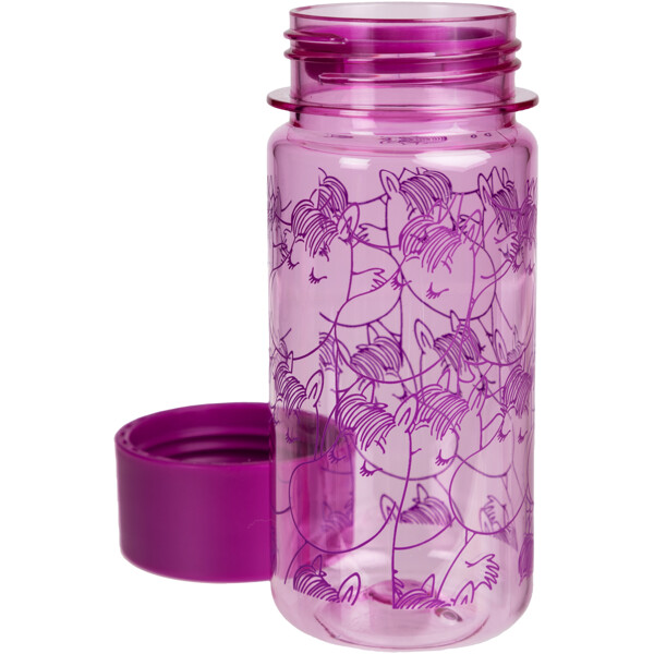 Käytännöllinen 3 dl vesipullo, jossa on kaunis Niiskuneiti-painatus. Lila pullo on läpinäkyvä ja valmistettu BPA-vapaasta tritaanimuovista. Kierrekorkin alla on irrotettava välikappale, joka helpottaa pienempien kulausten juomista myös nuoremmille lapsille.