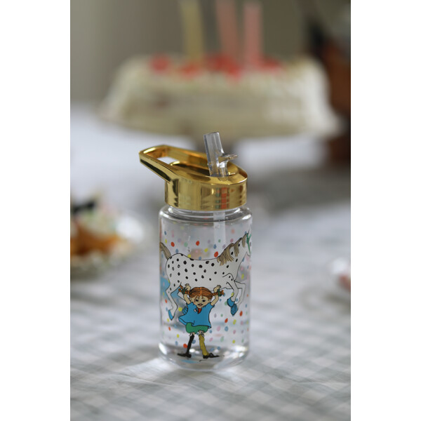 Vesipullo, joka on valmistettu kestävästä BPA-vapaasta muovista, ja jossa on ihana kuviointi Peppi Pitkätossu -kirjoista.