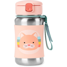 Zoo Sporttipullo kestävästä ruostumattomasta teräksestä on varustettu käteensopivalla silikonisuojalla, joka ei jäähdytä lapsen käsiä. Pullossa on sisäänrakennettu pilli, kätevä kantohihna ja pop-up-kansi hygieenistä käyttöä varten.
