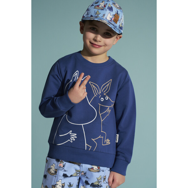 Klassinen Muumi-lippis lapsille. Esitaivutettu lippa, tukeva etuosa ja säädettävä tarranauha takana. Valmistettu sertifioidusta kierrätetystä polyesteristä.