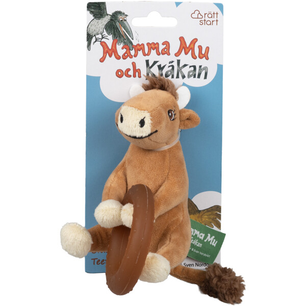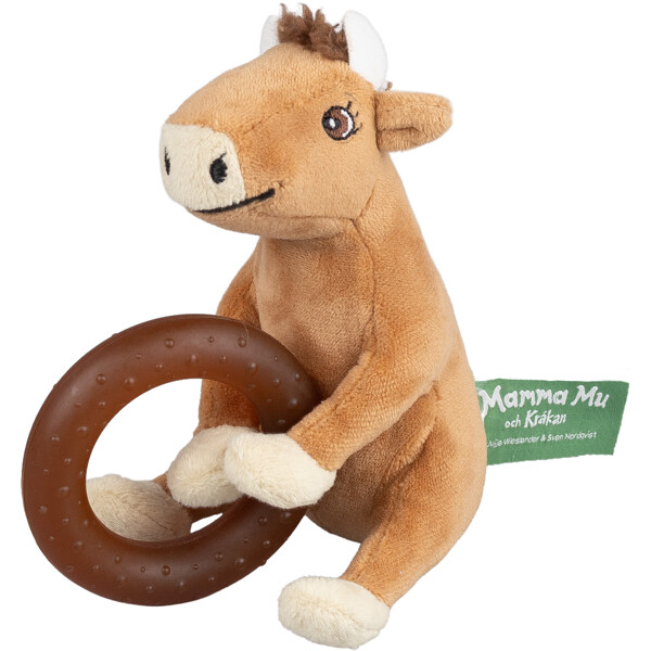 Pehmeä Mamma Mu, josta tulee nopeasti pienten suosikki. Sisäänrakennettu luonnonkumirengas tekee siitä helpon pitää pienissä käsissä - ja täydellisen pureskeltavaksi, kun hampaat ovat tulossa.