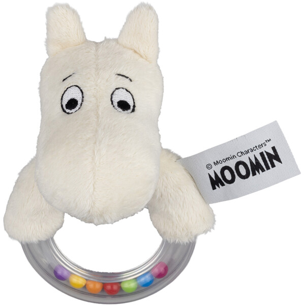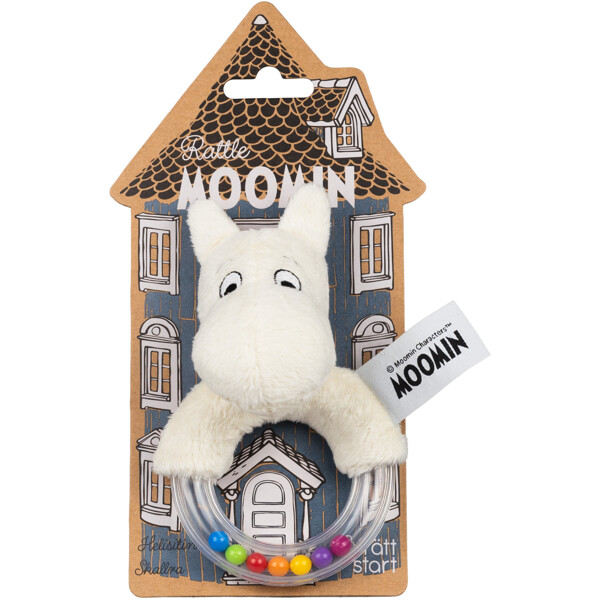Leikkisä helistin Muumilla. Täydellinen hienomotoristen ja sensoristen taitojen kehittämiseen. Helppo tarttua ja siinä on helisevä ääni, joka stimuloi lapsen kuuloaistia.
