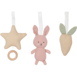 Vauvojen leikkimaton hahmot kiinnitetään leikkimattoon tarranauhalla, joten niitä on helppo siirtää eri paikkoihin. Tähti on soittorasia, joka soittaa kehtolaulua (Brahmsin Lullaby) ja porkkanassa on helistin, joka helisee vauvan koskettaessa sitä.