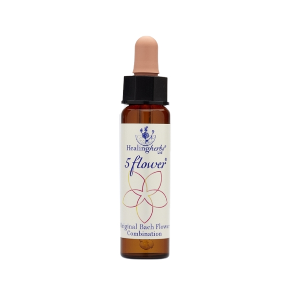 Five Flower Remedy voi olla apuna sinulle, kun tunnet olosi stressaantuneeksi, kärsit shokkitilasta, tunnet surua tai paniikkitiloja. Kutsutaan myös nimellä 'Pelastustipat'. Kaikista Dr Bachinkukkauutteista on tämä yhdistelmä kaikkein tunnetuin. Se koostuu viidestä Bachin 38:sta kukkaisaineesta: Star of Bethlehem - Shokkia ja traumaa vastaan. Rock Rose - Pelkotiloja ja paniikkia vastaan.Impatiens - Ärtyneisyyttä ja jännitystiloja vastaan. Cherry Plum - Kontrollin menettämisen pelkoa vastaan. Clematis - Pyörtymisen estämiseen. Five Flower Remedy sisältää taipumuksen lievittää jännitystiloja myös silloin, kuin tunnet olevasi epätasapainossa tilapäisesti. Käyttö:Välittömästi käytettäväksi sekoitetaan 4 tippaa lasilliseen vettä, ja se juodaan pieninä kulauksina. Jos sinulla ei ole mahdollisuutta käyttää vettä, voit tiputtaa 4 tippaa suoraan kielelle. On aina fiksua pitää pieni pullo Five Flower Remedyä lähettyvillä jos jotain odottamatonta tapahtuisi. AIne ei luonnollisestikaan korvaa muita lääkkeitä. , mutta se voi auttaa pääsemään eroon pelkotiloista ja siten palauttaa rauhallisuuden joka on tärkeää itsestään parantumiselle.