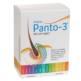 2 tablettia päivässä, mielellään ennen aamiaista. Parhaan tuloksen saamiseksi, hiuksille, kynsille ja iholle, käytä Panto-3.a päivittäin muutaman kuukauden ajan. Säilytetään lasten ulottumattomissa.Säilytetään kuivassa ja huoneenlämmössä.