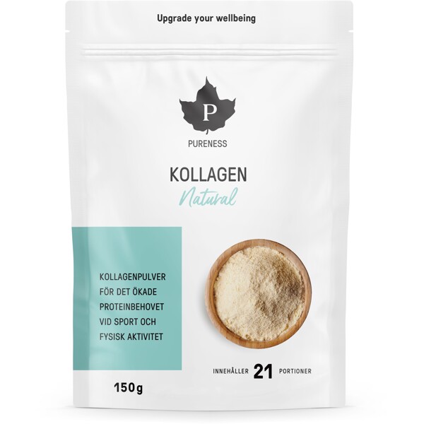 Pureness Kollagen Natural on monipuolinen kollageenijauhe ilman makuaineita. Kollageeni ja proteiini auttavat muun muassa lihasmassan rakentamisessa ja sopivat siksi erinomaisesti treenaaville. Kollagen Natural sopii myös täydellisesti ketogeeniseen ruokavalioon.Käyttämämme kollageeni on Bodybalance®-kollageenipeptidiä, joka on hyvin tutkittu naudan kollageeni. Lisäksi tuote sisältää hydrolysoituja kuituja guar-pavusta (Sunfiber®). Kollagen Natural on täysin rasvaton. Neutraalin makunsa ansiosta voit lisätä jauhetta melkein mihin tahansa, esimerkiksi kahviin tai smoothieen.