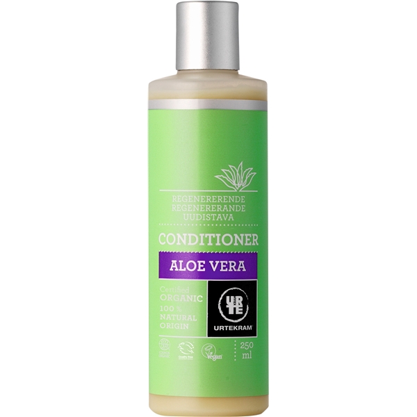 Aloe Vera Hoitoaine - uudelleenrakentava. Hiuksistasi tulee erityisen pehmeät kun käytät Urtekramin hoitoaineitta hiusten pesun jälkeen. Kevyt hoitoaine joka antaa hiuksille kosteutta tekemättä niitä raskaan tuntuisiksi.
