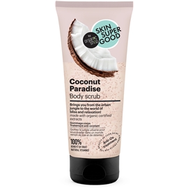 Skin Super Goods Body Scrub Coconut Paradise (Body Scrub Coconut Paradise) on trooppinen vartalokuorinta, jossa on rikas kookoksen tuoksu ja joka on rikastettu luomukookosöljyllä. Se on mieto ja geelipohjainen kuorinta, joka kuorii ja jättää ihon silkkisen pehmeäksi ja joustavaksi. Siinä on klassinen, täyteläinen ja trooppinen kookoksen tuoksu.