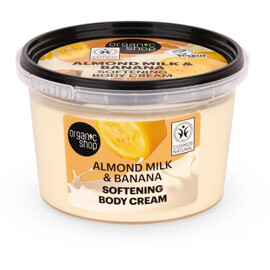 Organic Shop Almond Milk & Banana Softening Body Cream on ylellinen vartalovoide, joka antaa iholle syvää hoitoa ja silkkisen pehmeyden. Ravitsevan mantelimaitonsa ja auringon kypsyttämän banaanin ansiosta se tuo tärkeitä vitamiineja ja rasvahappoja, jotka vahvistavat ja kosteuttavat ihoa tehokkaasti.