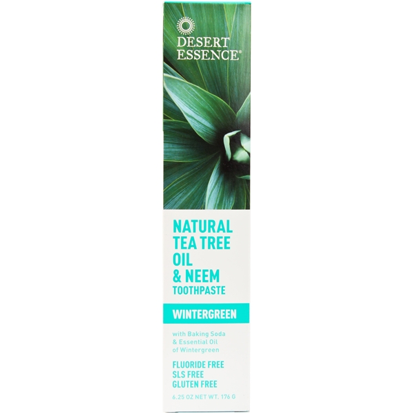 Hammastahna joka sisältää bakteereita tuhoavaa tea tree ja neem öljyä. Antaa pitkäkestoisen raikkaan tunteen hampaidenpesun jälkeen. Yhdistä mieluusti Desert Essencen hammaslankaan.Desert EssenceDesert Essence on amerikkalainen yritys joka perustettiin 1978 päämääränään luoda hygienia- ja ihonhoitotuotteita inspiraationaan luonto ja aavikko. He ottivat ensin käyttöön sekä jojoba- että tea tree öljyn amerikkalasilla markkinoilla. Nykyisin heillä on laaja valikoima ympäristöystävällisiä ja luonnontuotteita – jotta sinä voisit hyvällä omallatunnolla nauttia laadukkaista tuotteista.