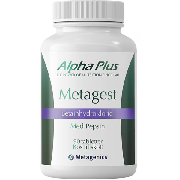 Metagest koostuu betaiinihydrokloridin ja pepsiinin seoksesta. Betaiinihydrokloridin pH on alhainen; pepsiini on entsyymi, jonka molekyylimassa on 34,6 kDa ja joka on aktiivinen happamassa ympäristössä (pH-optimi 1,5-2,0)