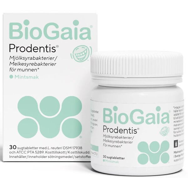 BioGaia Prodentis on edistynyt probioottinen ravintolisä suulle* raikkaalla mintun maulla. Sisältää kaksi patentoitua korkealaatuista bakteerikantaa, jotka auttavat tasapainottamaan suun bakteeriflooraa.