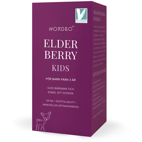 Elderberry Kids sisältää Sambucus Nigra (mustaselja) -marjatiivistettä.Elderberry Kidsia voi ottaa ympäri vuoden, kauden alussa tai tarpeen mukaan. Helppo annostella 1-2 tl päivässä.Hyvän marjan maun ja ilman lisättyä sokeria. Makeutettu vain luonnollisella ksylitolilla. Vegaanisertifioitu Djurens Rättin toimesta.